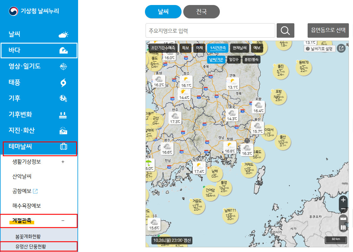 기상청 날씨누리에서 단풍 현황 확인하는 방법