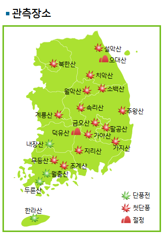 | 전북 | 덕유산, 내장산 | 절정 |