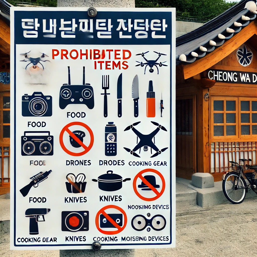 | 반입 금지 | 음식물, 드론, 흉기, 취사도구, 소음 유발 물품 등 |