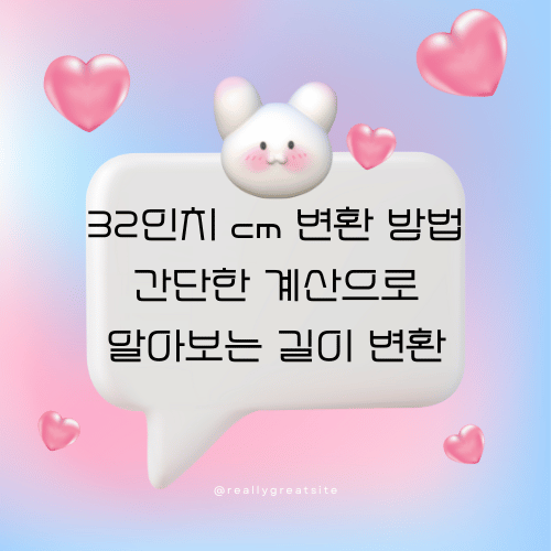 인치(inch)는 국제단위계(SI)와는 다른 영미제국에서 주로 사용하는 길이 단위입니다. 많은 사람들이 인치와 센티미터(cm) 사이의 변환 방법을 궁금해하는데요, 오늘은 32인치 cm로 변환하는 방법을 알아보겠습니다.